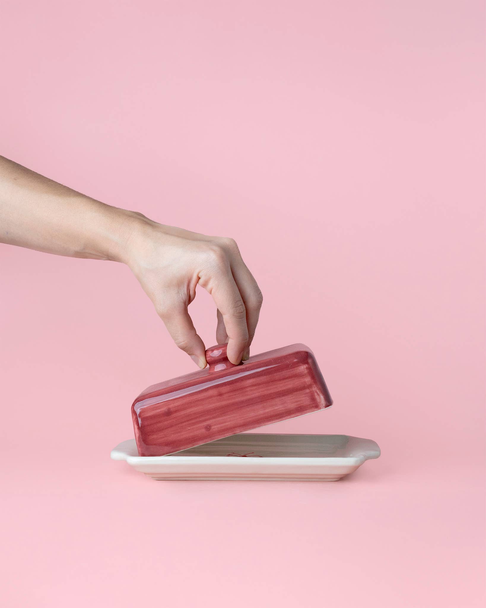 Burgundy Ceramic Butter Dish – Handmade Holiday Gift - Noell