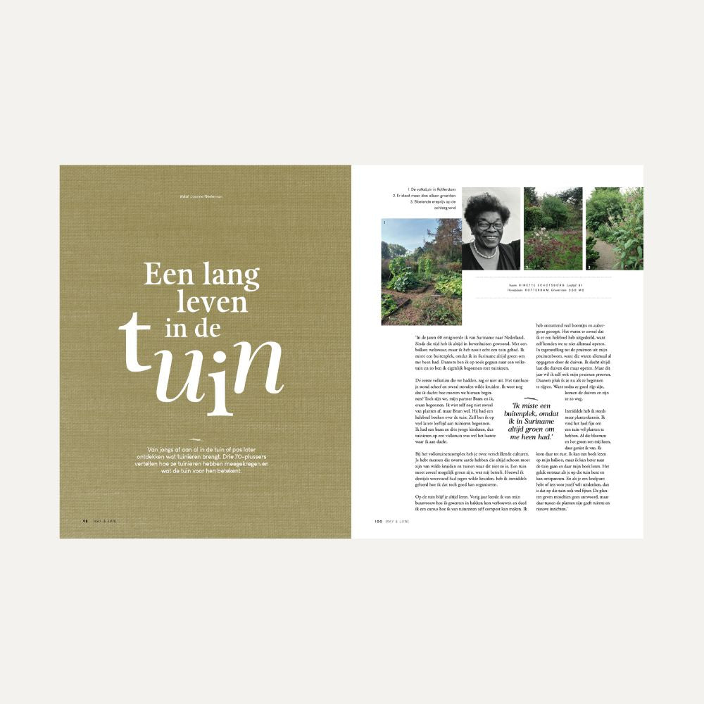 Hup, naar buiten! Dit nummer staat bomvol inspiratie om ook in het najaar van je tuin te genieten, zelfs als het kouder wordt. Het is een praktische gids om je voor te bereiden op een nieuw seizoen. Maak een bollenplan waar je u tegen zegt, ontdek hoe je planten vermeerdert én wat de mooiste combinaties zijn. Ga mee op pad langs karakteristieke kasteeltuinen of creëer zelf een plek waardoor jij (en je kids) het seizoen volop kunnen beleven in eigen tuin. Ook vind je twee heel verschillende, maar inspirerende Buitenkijkers én lees je het verhaal van Cruydt-Hoeck. In de herfst gaan we dit jaar allemaal - hup - naar buiten! Ga je mee?