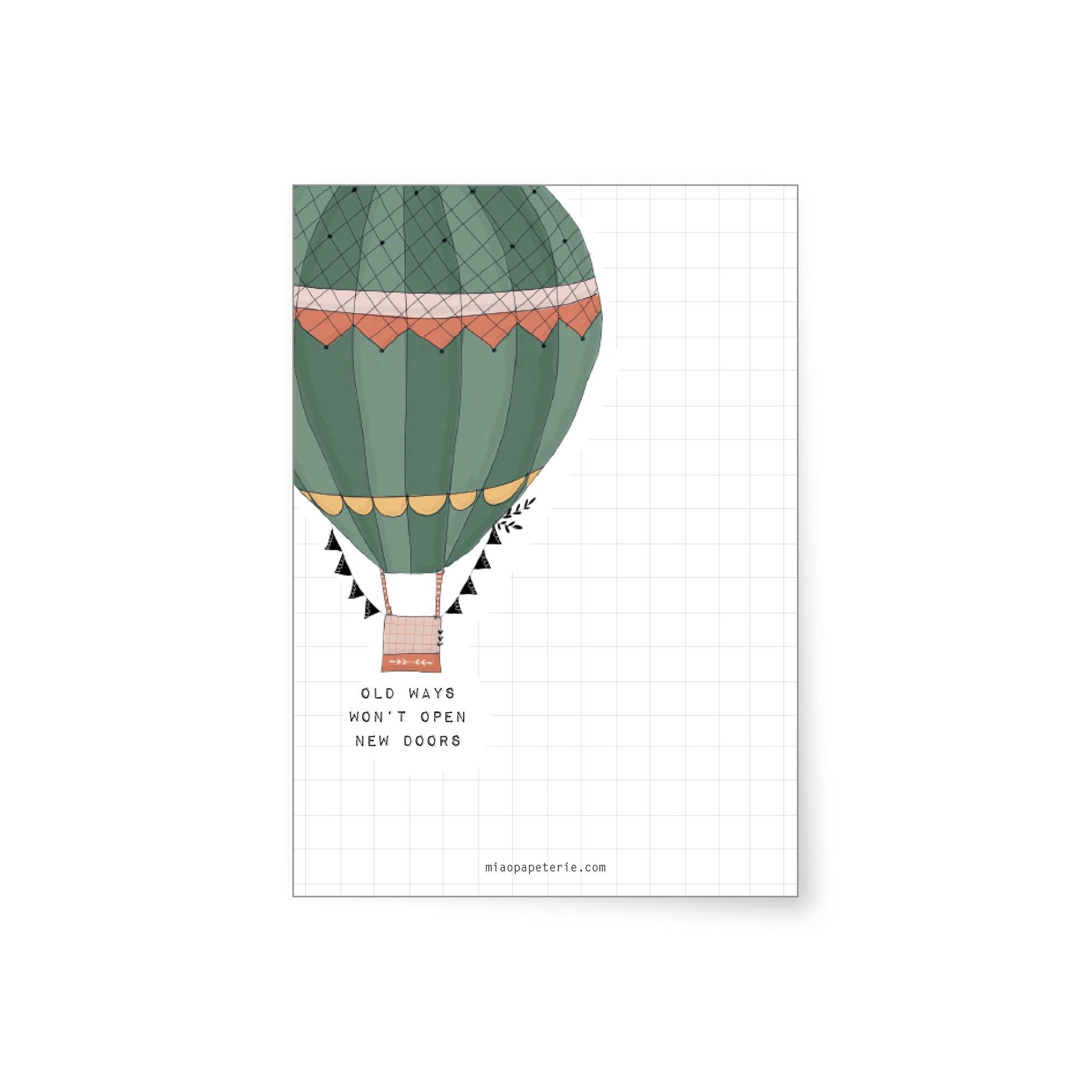 MIAO notepad with 50 pages and cardboard backing, printed in 4 colors on one side on 90g paper in the size DINA6 - 10.5 x 14.6 cm