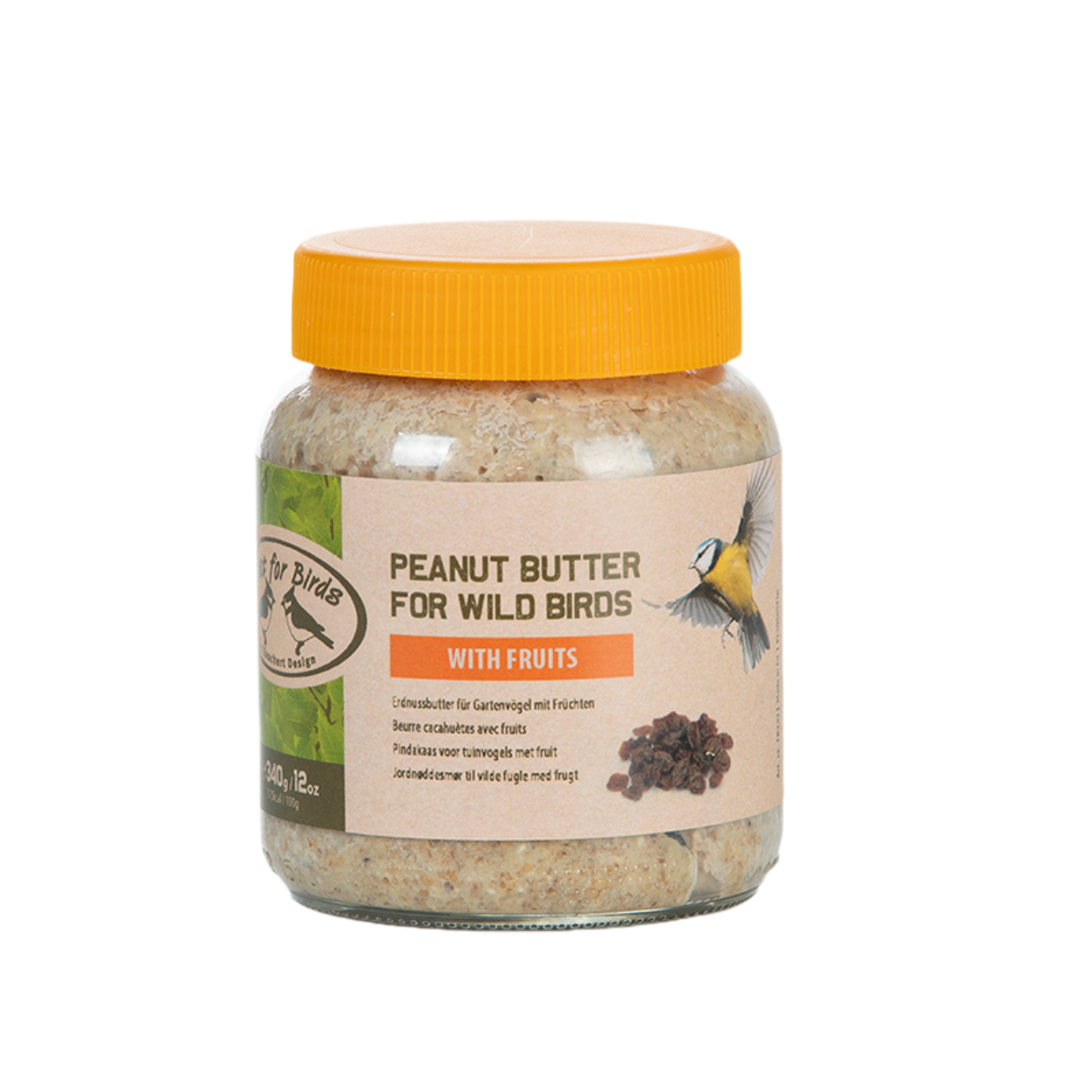 Vogelpindakaas is voor onze gevleugelde vrienden een ware lekkernij! Het bevat goede voedingsstoffen voor vogels, zit boordevol calorieën, is voedzaam en gezond. Gewone pindakaas (voor eigen consumptie) bevat echter ook veel zout en dat is erg ongezond voor de vogels. Deze pindakaas is speciaal ontwikkeld en bevat essentiële ingrediënten die tuinvogels nodig hebben zonder toegevoegd zout. Door de bijzondere samenstelling van deze vruchtenpindakaas is deze het hele jaar rond geschikt om te voeren. Plaats de pindakaas in het speciale pindakaashuisje en geniet van de tuinvogels die deze aantrekt.